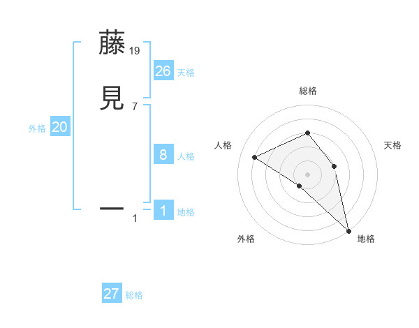 藤見 一さんの天格は26画の2点!