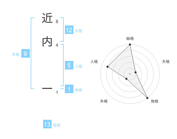 近内 一さんの総格は13画の5点!
