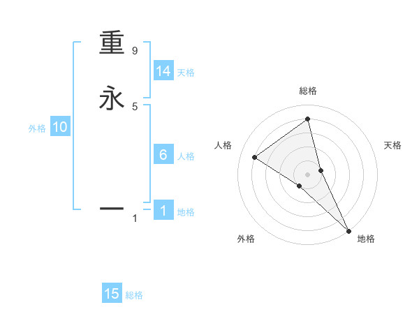 重永 一さんの総格は15画の4点!