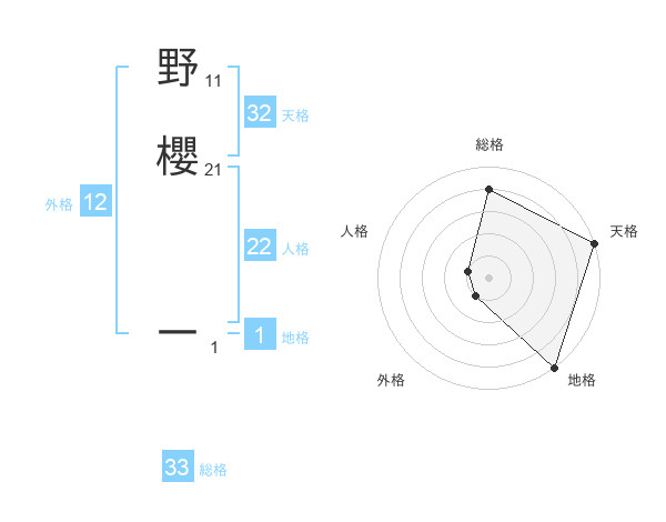 野櫻 一さんの総格は33画の4点!