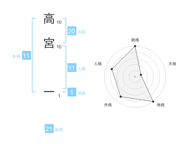 高宮 一さんの天格は20画の1点!