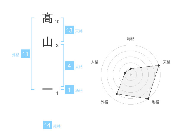 髙山 一さんの天格は13画の5点!