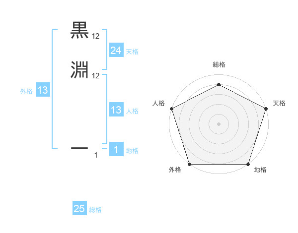 黒淵 一さんの総格は25画の4点!