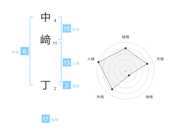 中﨑 丁さんの総格は17画の4点!