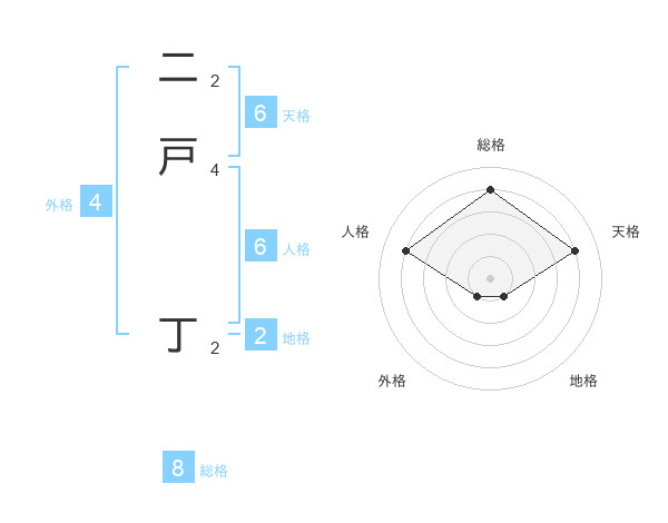 二戸 丁さんの天格は6画の4点!