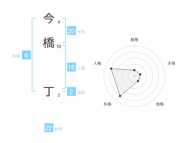 今橋 丁さんの総格は22画の1点!