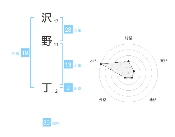 沢野 丁さんの天格は28画の1点!