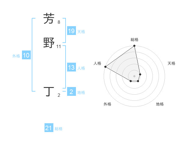 芳野 丁さんの総格は21画の5点!
