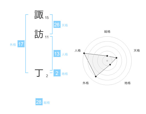 諏訪 丁さんの天格は26画の2点!
