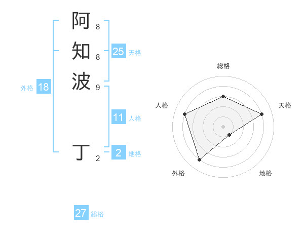 阿知波 丁さんの総格は27画の3点!