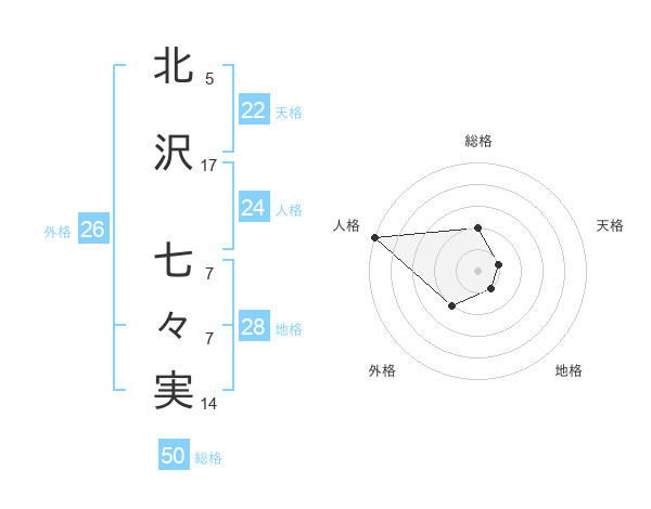 北沢 七々実さんを姓名の画数から五運を鑑定