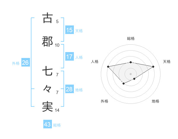 古郡 七々実さんを姓名の画数から五運を鑑定