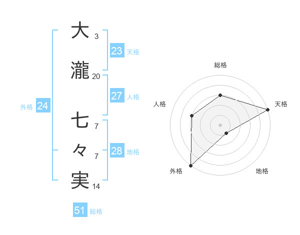 大瀧 七々実さんの総格は51画の3点!