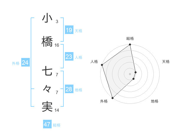 小橋 七々実さんを姓名の画数から五運を鑑定