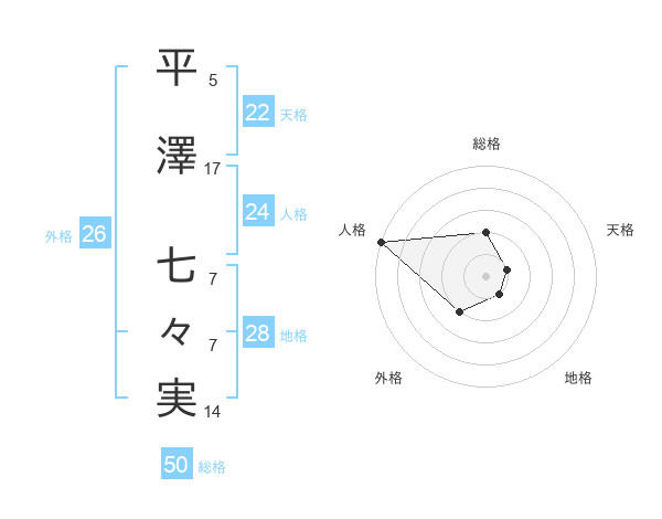 平澤 七々実さんの総格は50画の2点!