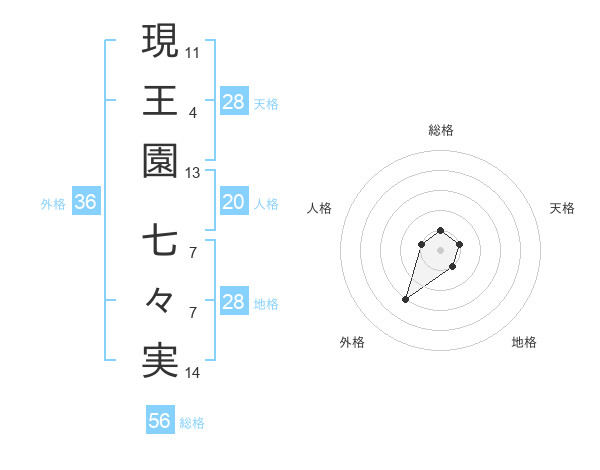 現王園 七々実さんの総格は56画の1点!