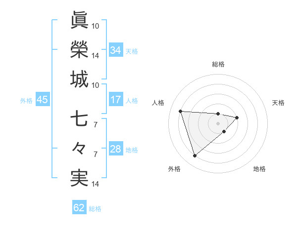 眞榮城 七々実さんを姓名の画数から五運を鑑定