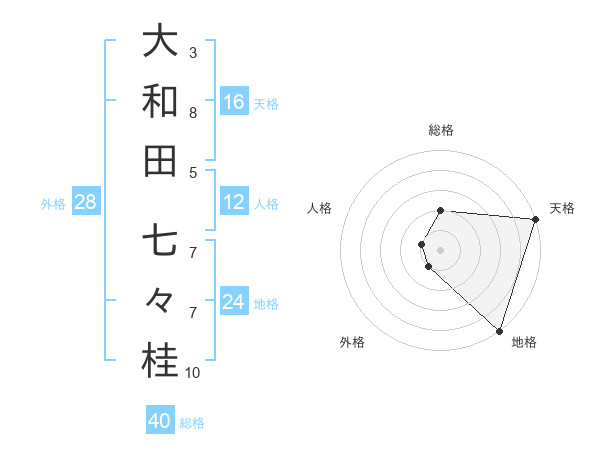 大和田 七々桂さんを姓名の画数から五運を鑑定