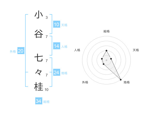 小谷 七々桂さんを姓名の画数から五運を鑑定