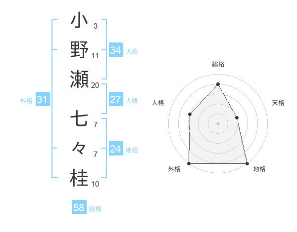 小野瀬 七々桂さんを姓名の画数から五運を鑑定