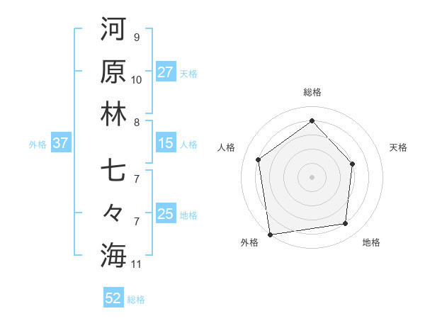 河原林 七々海さんを姓名の画数から五運を鑑定