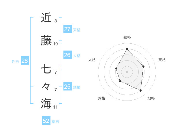 近藤 七々海さんを姓名の画数から五運を鑑定