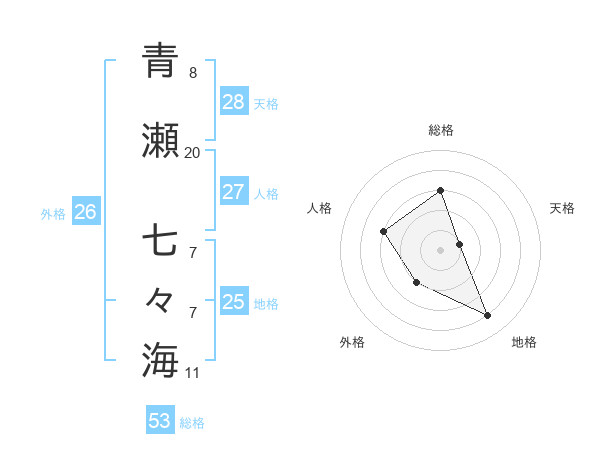 青瀬 七々海さんの総格は53画の3点!