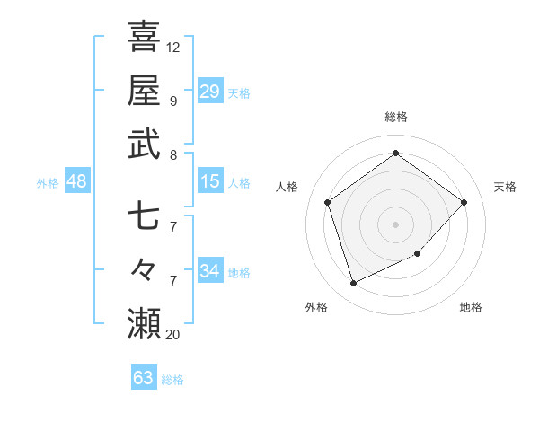 喜屋武 七々瀬さんを姓名の画数から五運を鑑定