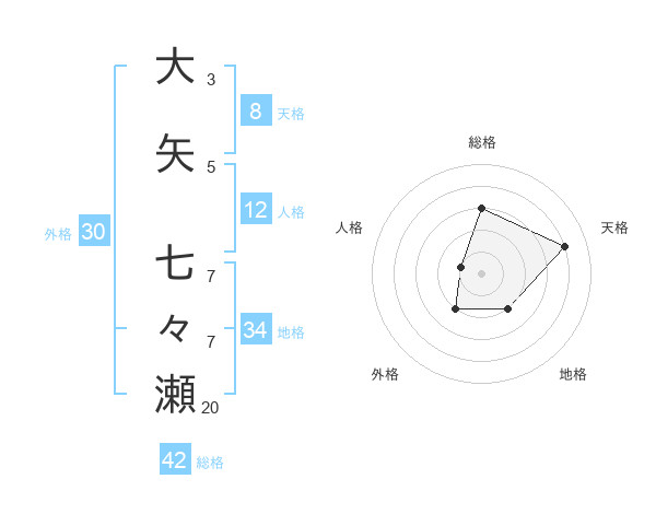 大矢 七々瀬さんの総格は42画の3点!