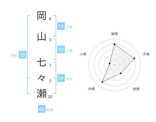 岡山 七々瀬さんを姓名の画数から五運を鑑定