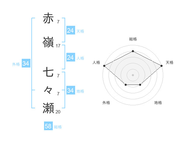 赤嶺 七々瀬さんを姓名の画数から五運を鑑定