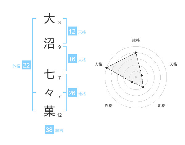 大沼 七々菓さんを姓名の画数から五運を鑑定