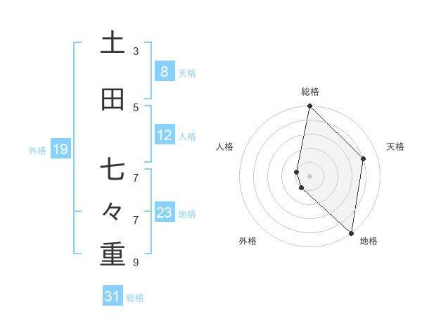 土田 七々重さんの地格は23画の5点!