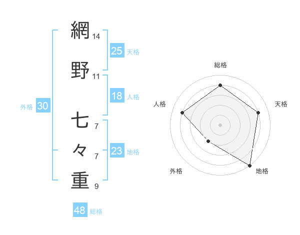 網野 七々重さんの総格は48画の4点!