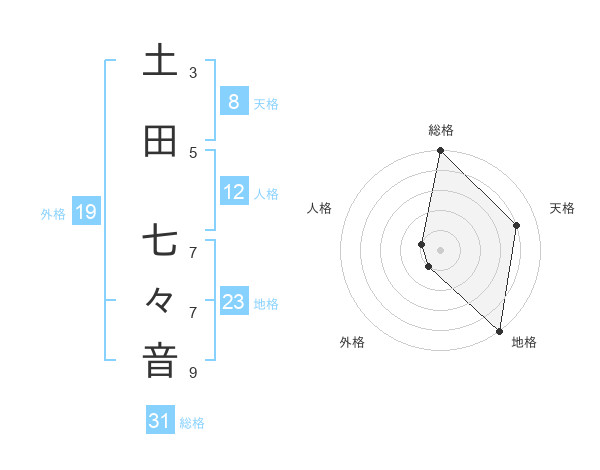 本サイトの鑑定結果の正当性は保証しません。鑑定結果は参考程度にお読みください。実際の名づけにご利用される場合は、姓名判断についてご自身でよくお調べください。