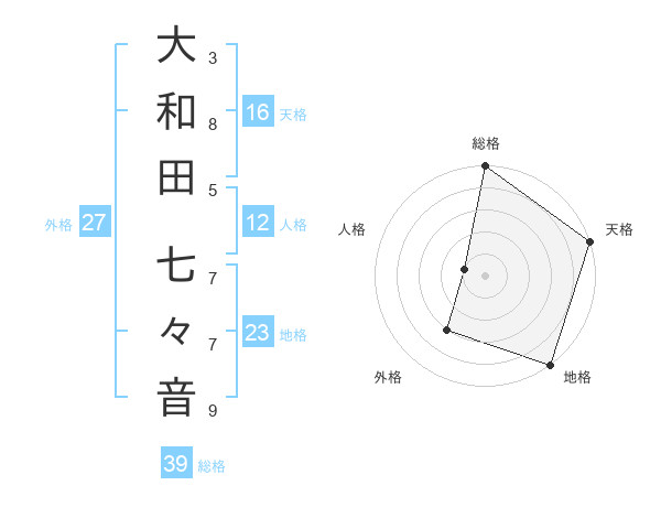 大和田 七々音さんの総格は39画の5点!