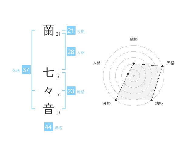蘭 七々音さんの天格は21画の5点!