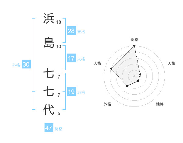 浜島 七七代さんを姓名の画数から五運を鑑定