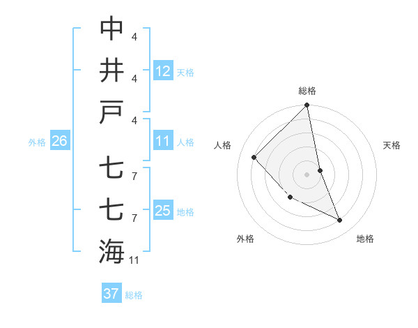 中井戸 七七海さんを姓名の画数から五運を鑑定