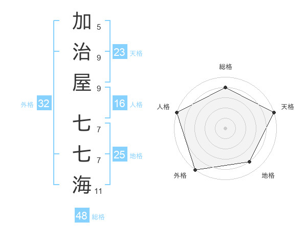 加治屋 七七海さんを姓名の画数から五運を鑑定