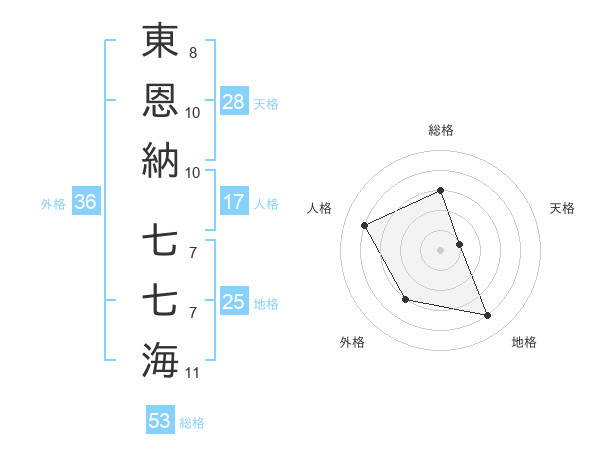 東恩納 七七海さんを姓名の画数から五運を鑑定