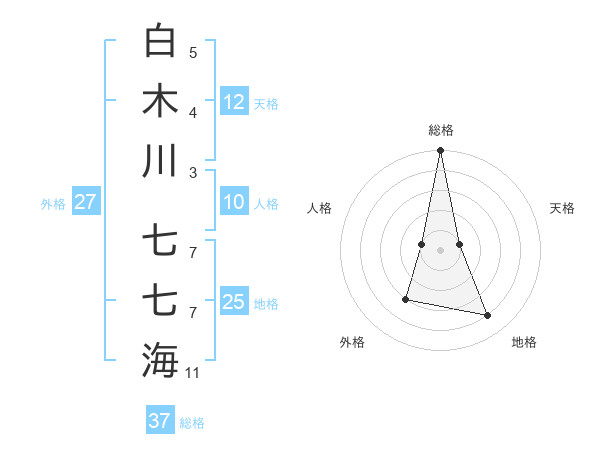 白木川 七七海さんの総格は37画の5点!