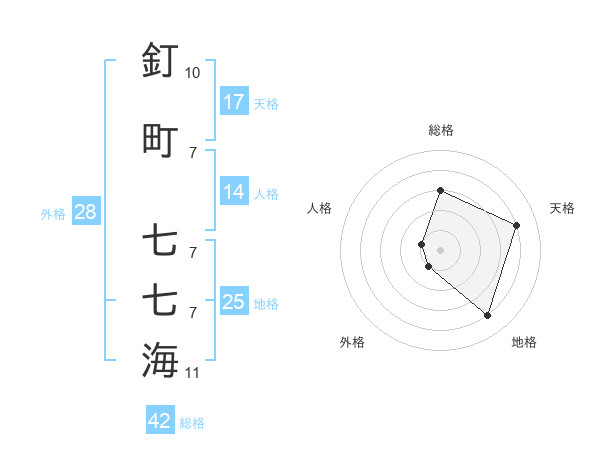 釘町 七七海さんの天格は17画の4点!