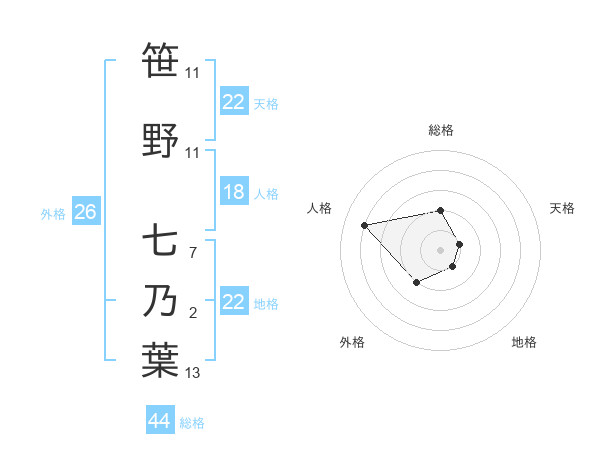 笹野 七乃葉さんを姓名の画数から五運を鑑定