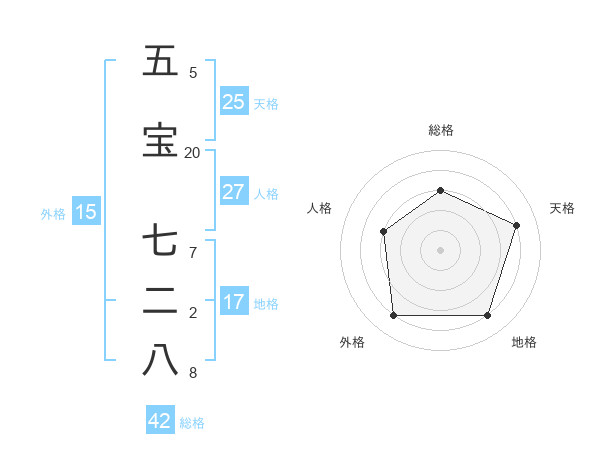 五宝 七二八さんの天格は25画の4点!