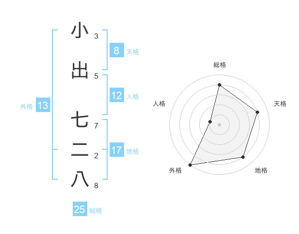 小出 七二八さんの外格は13画の5点!