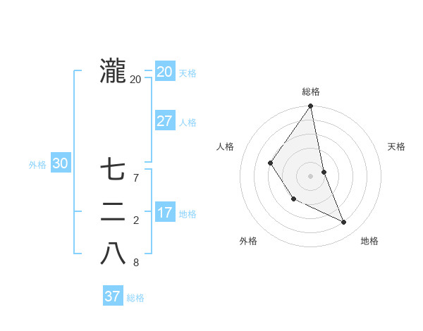 瀧 七二八さんの天格は20画の1点!