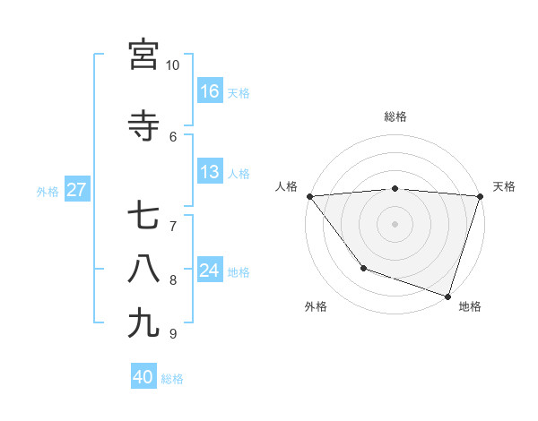 宮寺 七八九さんを姓名の画数から五運を鑑定