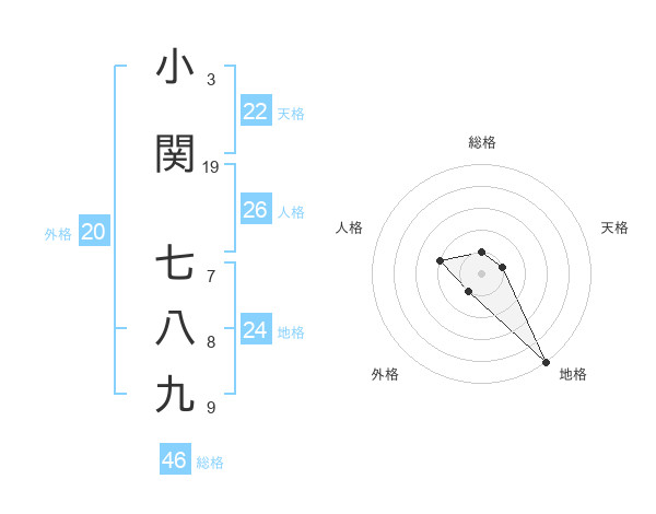 小関 七八九さんの地格は24画の5点