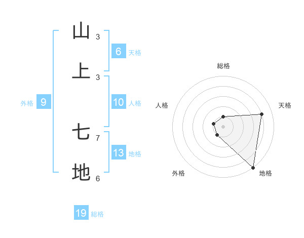 山上 七地さんの地格は13画の5点